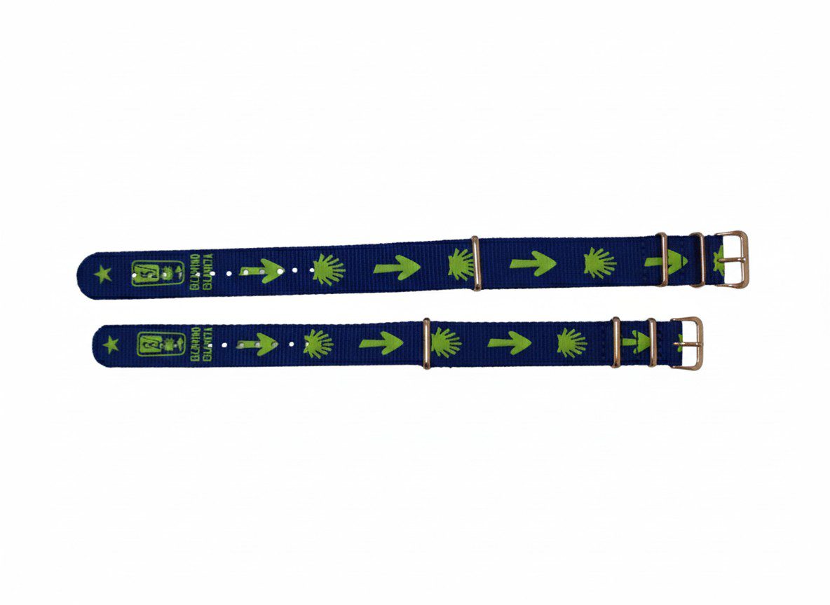 Reloj del Camino de Santiago con Caja de color Oro Rosa de 38mm de diámetro y correa NATO con la Concha del peregrino en Nailon.